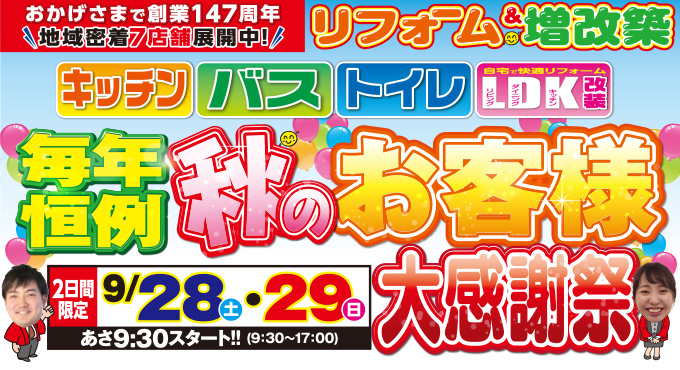 (緑店)秋のお客様大感謝祭を自店舗にて開催!(2019年9月28日、29日)