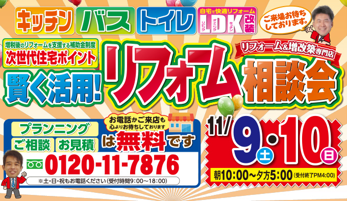 (i・Style/稲沢店)次世代住宅ポイント賢く活用!リフォーム相談会を自店舗にて開催!(2019年11月9日〜10日)