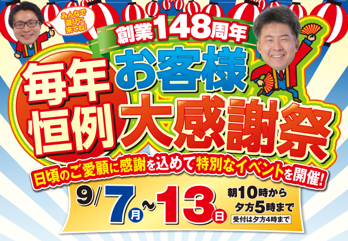 (i・Style/稲沢店)創業148周年、お客様大感謝祭を自店舗にて開催!(2020年9月7日〜13日)