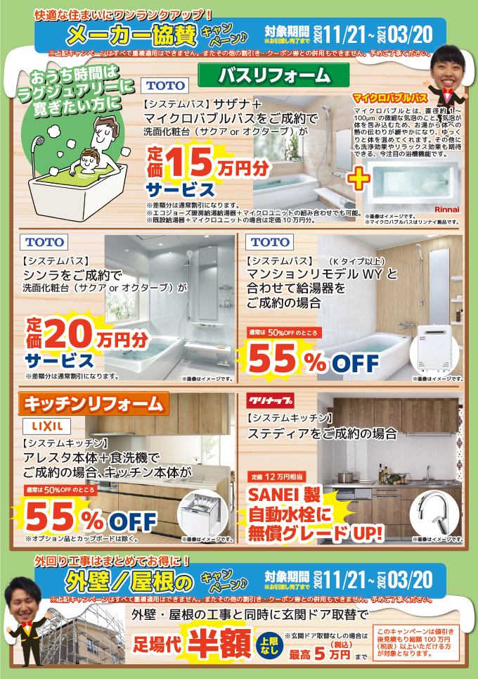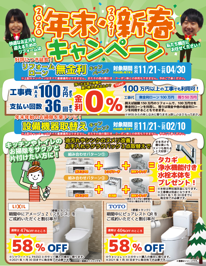 2020年末・2021新春キャンペーンスタート 年末年始の大掃除を楽チンに!快適でお手入れ簡単な住まいへとリフォームしませんか?