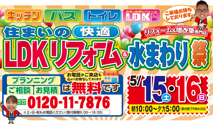 (春日井店)住まいの快適LDKリフォーム&水まわり祭を開催します!(2021年5月15日〜16日)