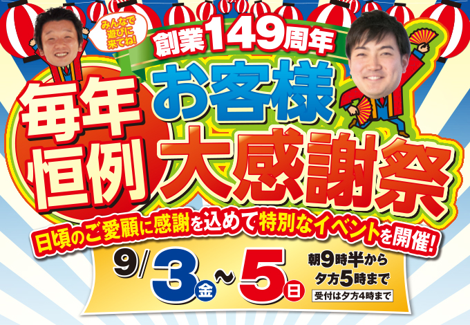 (緑店)創業149周年 お客様大感謝祭を開催します!(2021年9月3日〜5日)