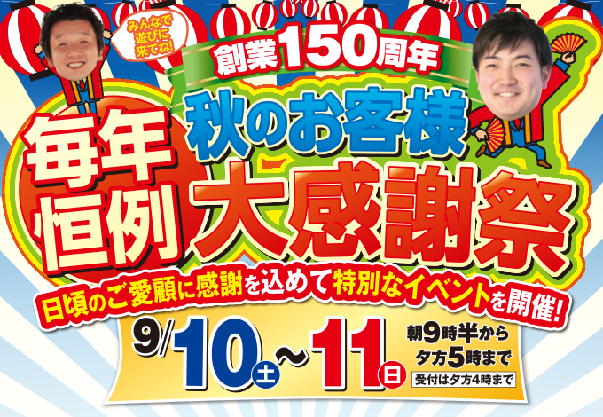 (緑店)創業150周年、秋のお客様大感謝祭を開催します!(2022年9月10日〜11日)