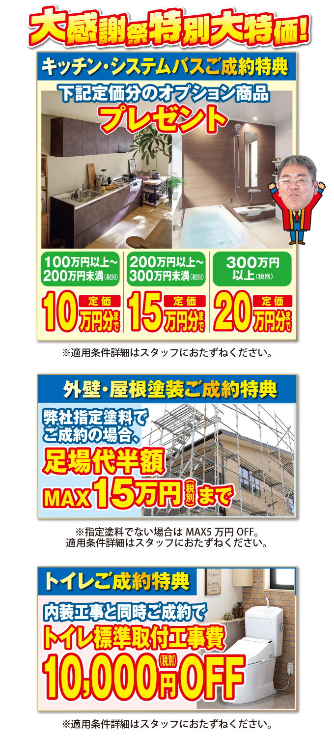 ※新規でリフォームをご相談された方が対象となります。すでに商談中の方は適用不可になりますので、ご了承ください。