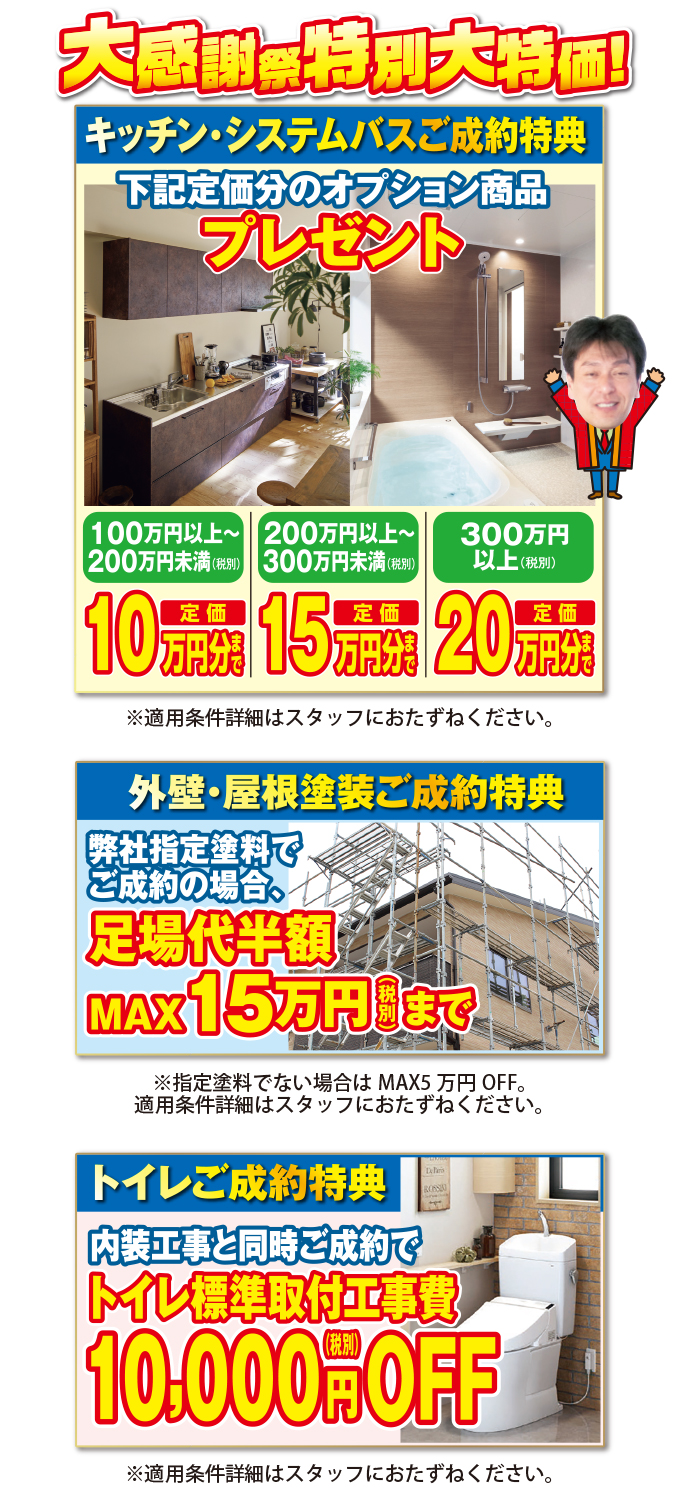 ※新規でリフォームをご相談された方が対象となります。すでに商談中の方は適用不可になりますので、ご了承ください。
