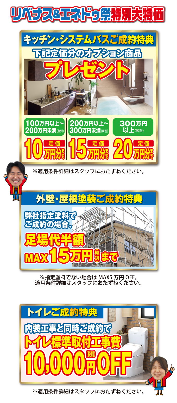 ※新規でリフォームをご相談された方が対象となります。すでに商談中の方は適用不可になりますので、ご了承ください。