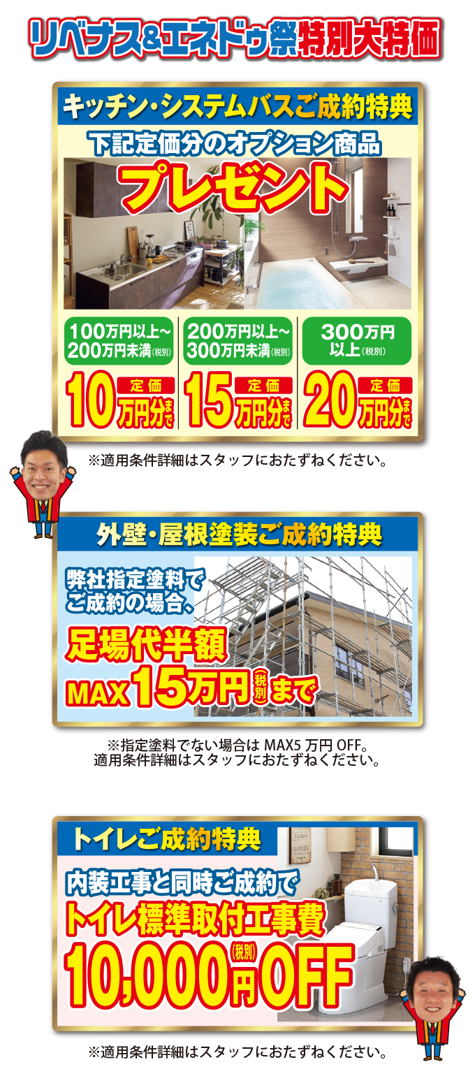 ※新規でリフォームをご相談された方が対象となります。すでに商談中の方は適用不可になりますので、ご了承ください。