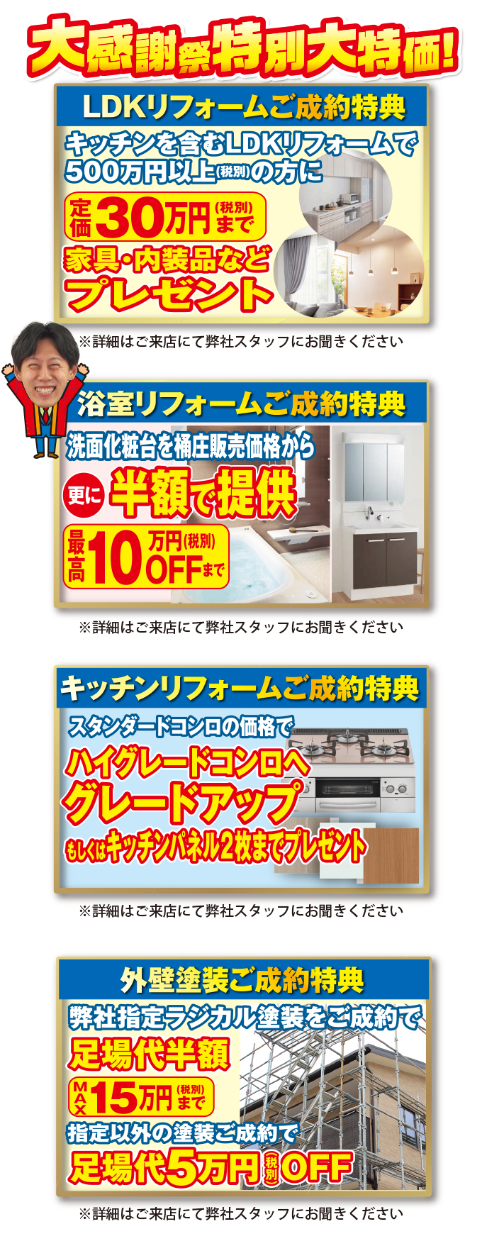 ※新規でリフォームをご相談された方が対象となります。すでに商談中の方は適用不可になりますので、ご了承ください。