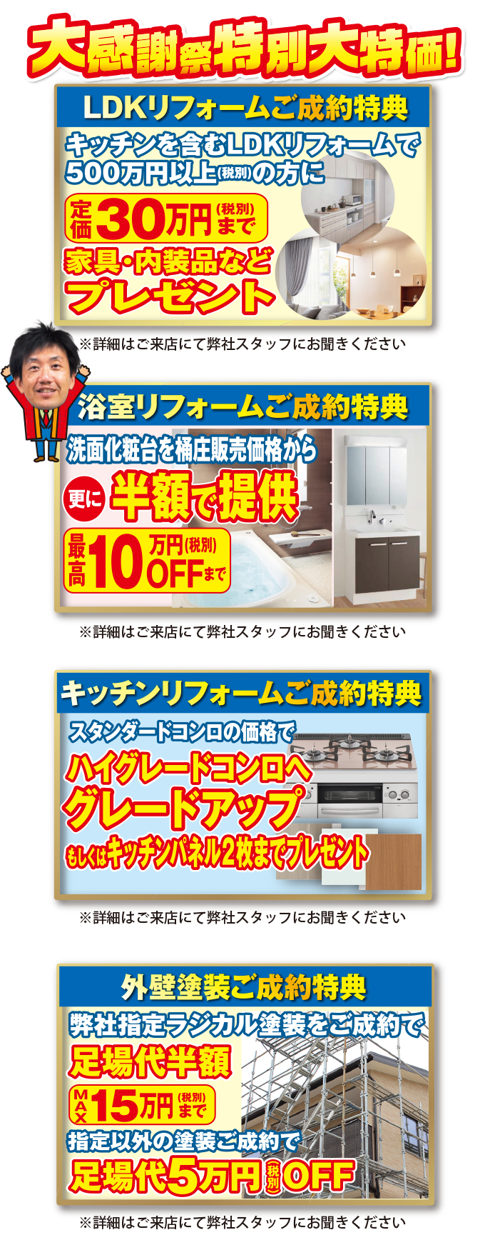 ※新規でリフォームをご相談された方が対象となります。すでに商談中の方は適用不可になりますので、ご了承ください。