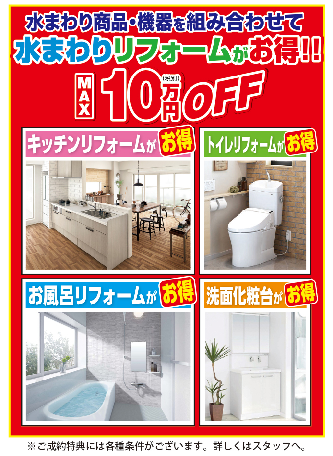 ※新規でリフォームをご相談された方が対象となります。すでに商談中の方は適用不可になりますので、ご了承ください。