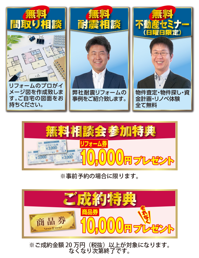 ※新規でリフォームをご相談された方が対象となります。すでに商談中の方は適用不可になりますので、ご了承ください。
