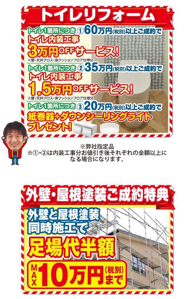 ※新規でリフォームをご相談された方が対象となります。すでに商談中の方は適用不可になりますので、ご了承ください。