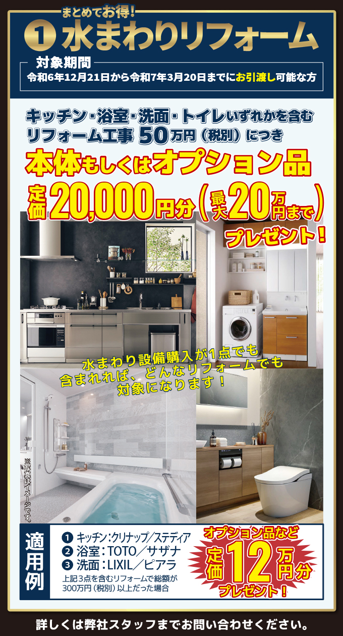 ※新規でリフォームをご相談された方が対象となります。すでに商談中の方は適用不可になりますので、ご了承ください。