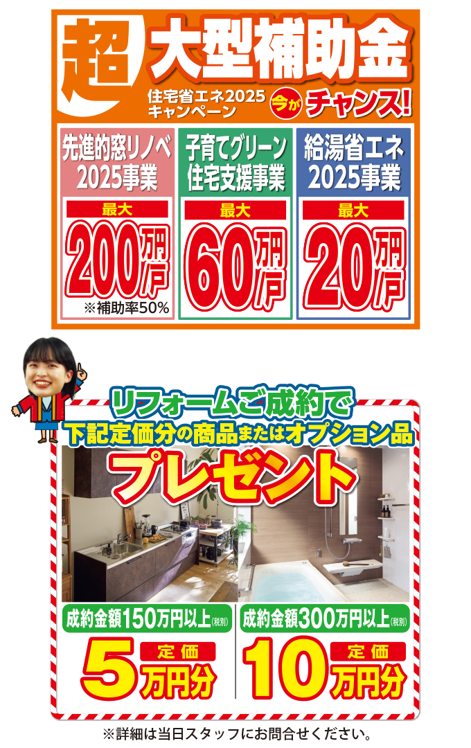 ※新規でリフォームをご相談された方が対象となります。すでに商談中の方は適用不可になりますので、ご了承ください。