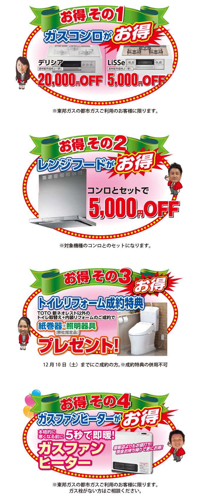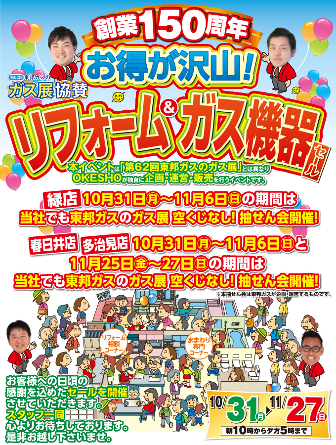 (3店舗同時開催)お得が沢山!ガス展協賛 リフォーム&ガス機器セール(2022年10月31日〜11月27日)