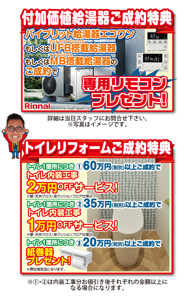 (3店舗同時開催)お得が沢山!ガス展協賛 リフォーム&ガス機器セール(2024年11月8日〜11月22日)