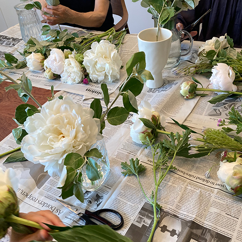 ・内容:季節の移ろいを感じたり、香りに癒されたり、お花に触れて楽しい時間を過ごしてください♪7月のレッスンは、暑さにも強い様々なグリーンを使って涼しげな雰囲気にあしらいます