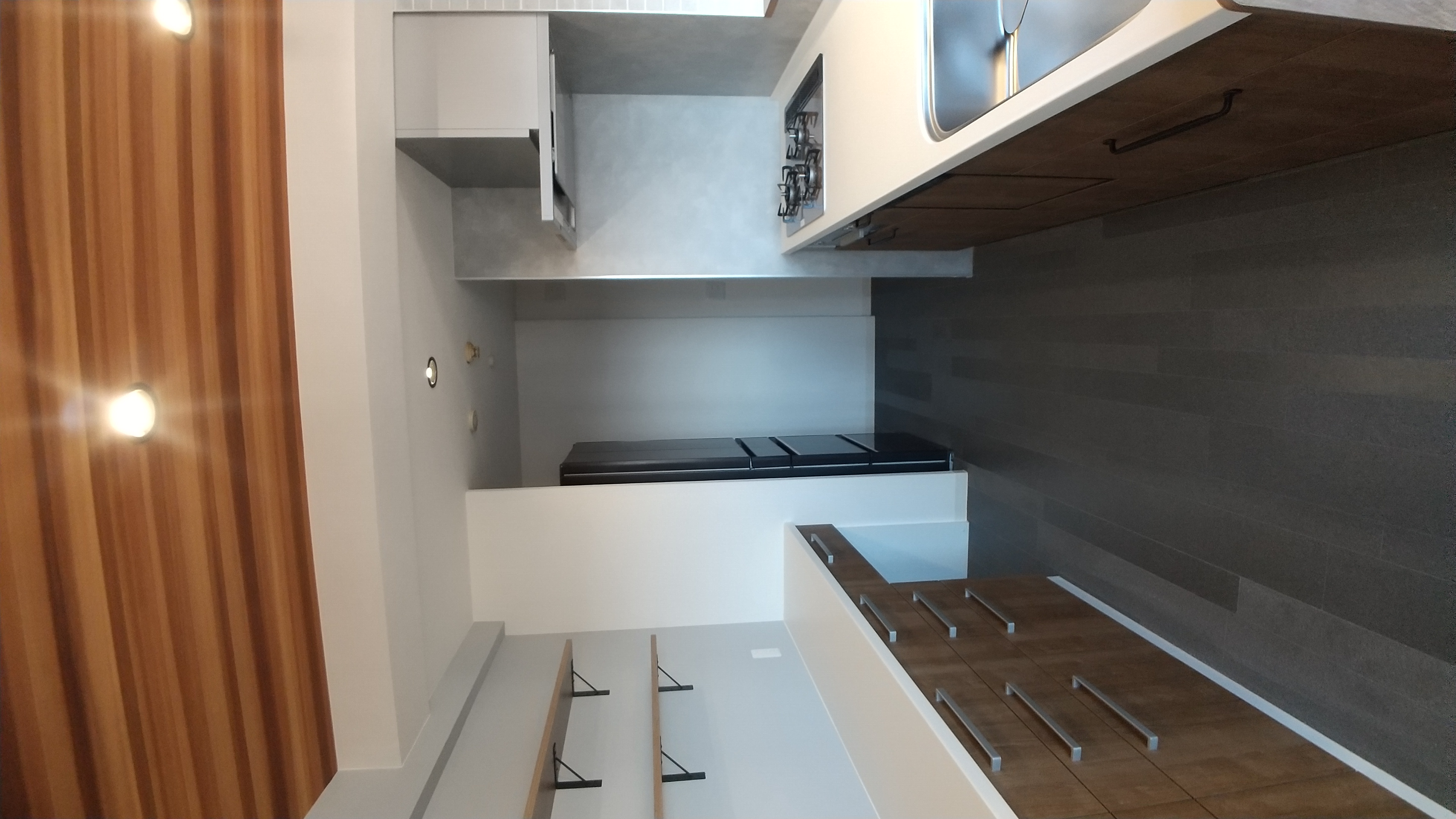 面材を揃えた上で背面収納とキッチン本体を変えるなど、