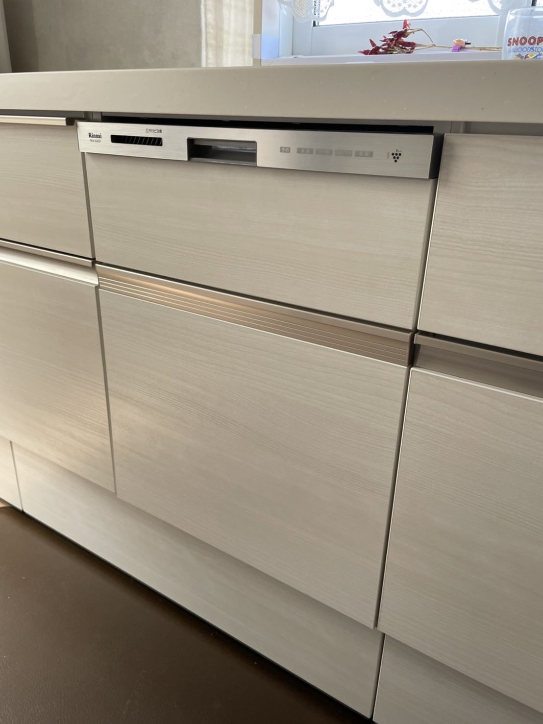 コンロは新しくIHに変更、レンジフードは10年お手入れ不要の商品に、食器洗い乾燥機も備え、
