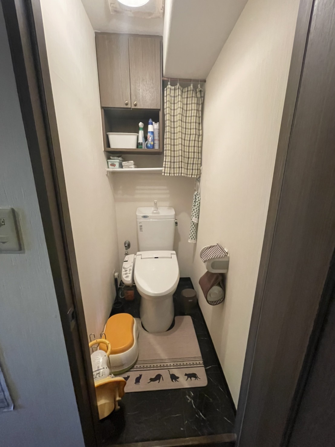 | 工事期間 | 2日間。 1日目:トイレ外し→紙巻き器手摺の下地工事 2日目:内装クロス・クッションフロア張り→トイレ・紙巻き器設置 ※トイレは1日目に外してしまうので1日ご使用できません。 |