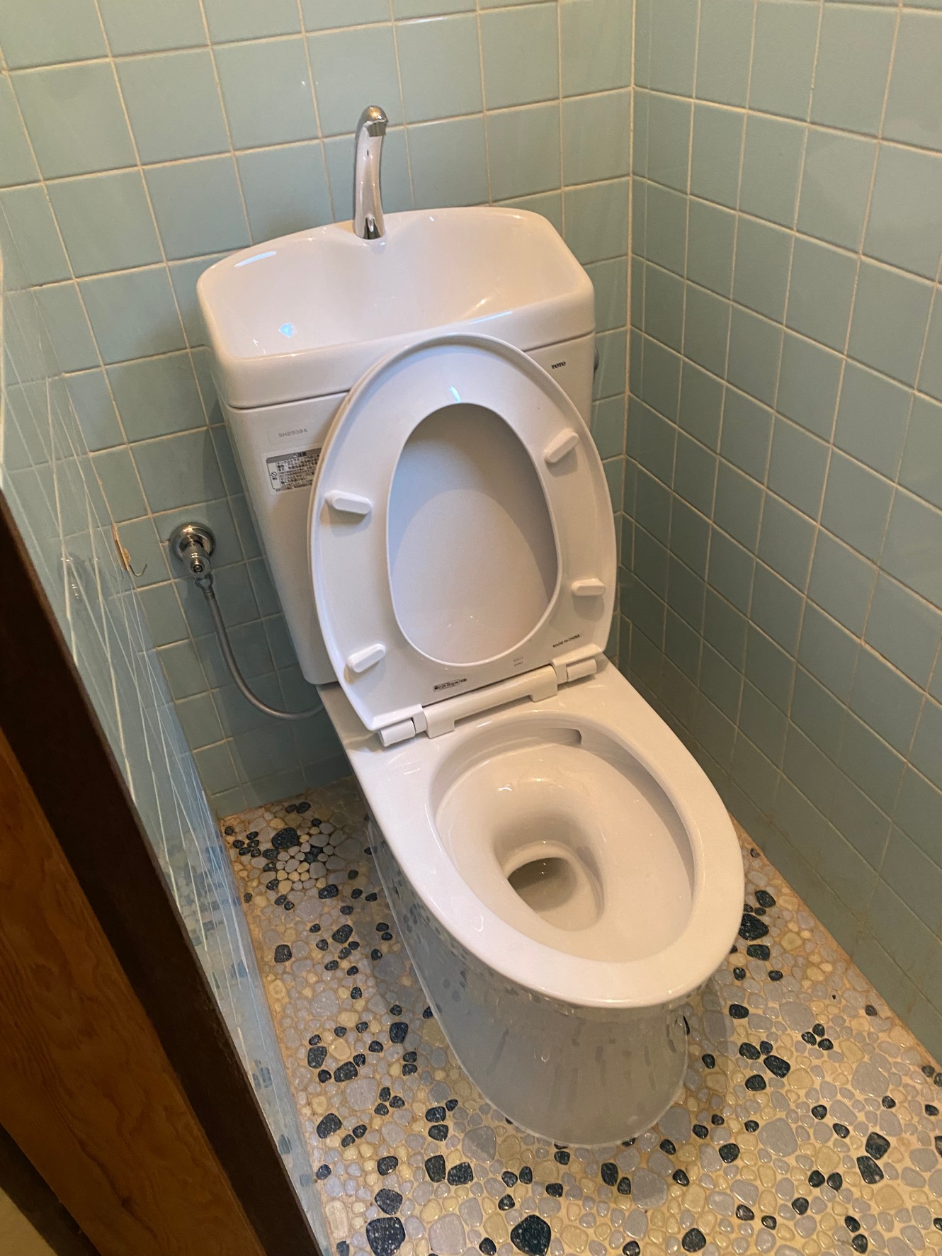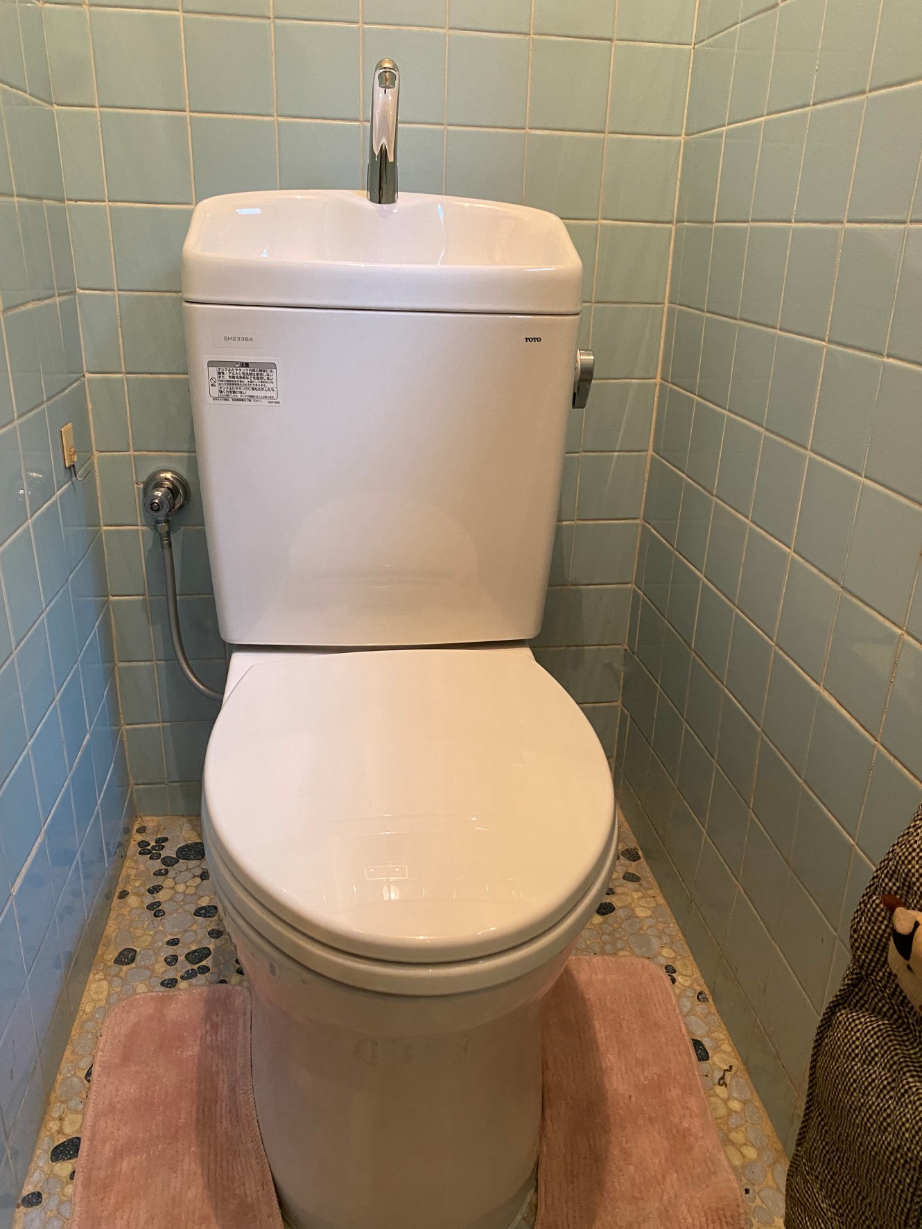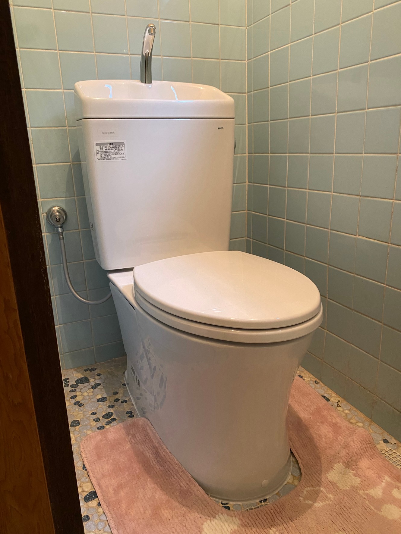 既存の壁と床が水色のタイルだったため、その色とマッチする白色をご提案させて頂きました。白色は清潔感もあるので、N様にも気に入って頂くことができました。また、便器内のお掃除は、ブラシをご使用されるとのことだったので、便器の縁にブラシがフィットし、お掃除しやすいピュアレストQR(TOTO)のおトイレをご提案いたしました。