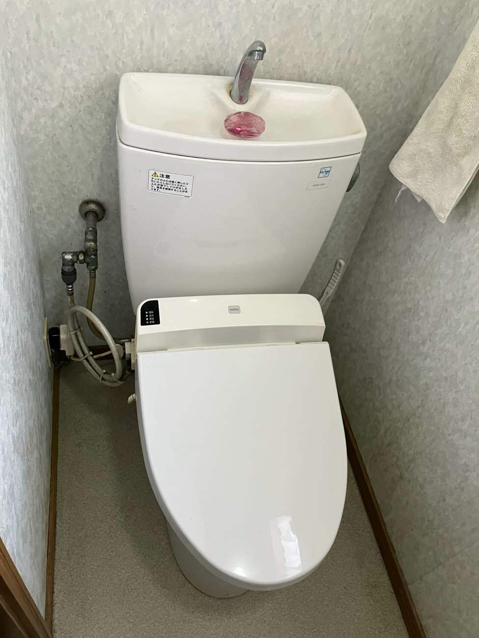 手洗いがタンク上にあり、手を洗うときに奥まで手を伸ばさなくてはいけませんでした。
