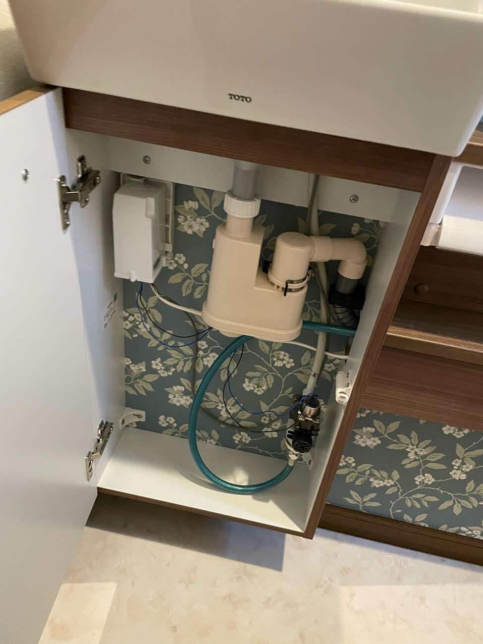 ワンデーリモデルカウンタータイプのため、給排水工事無しで手洗器を設置。