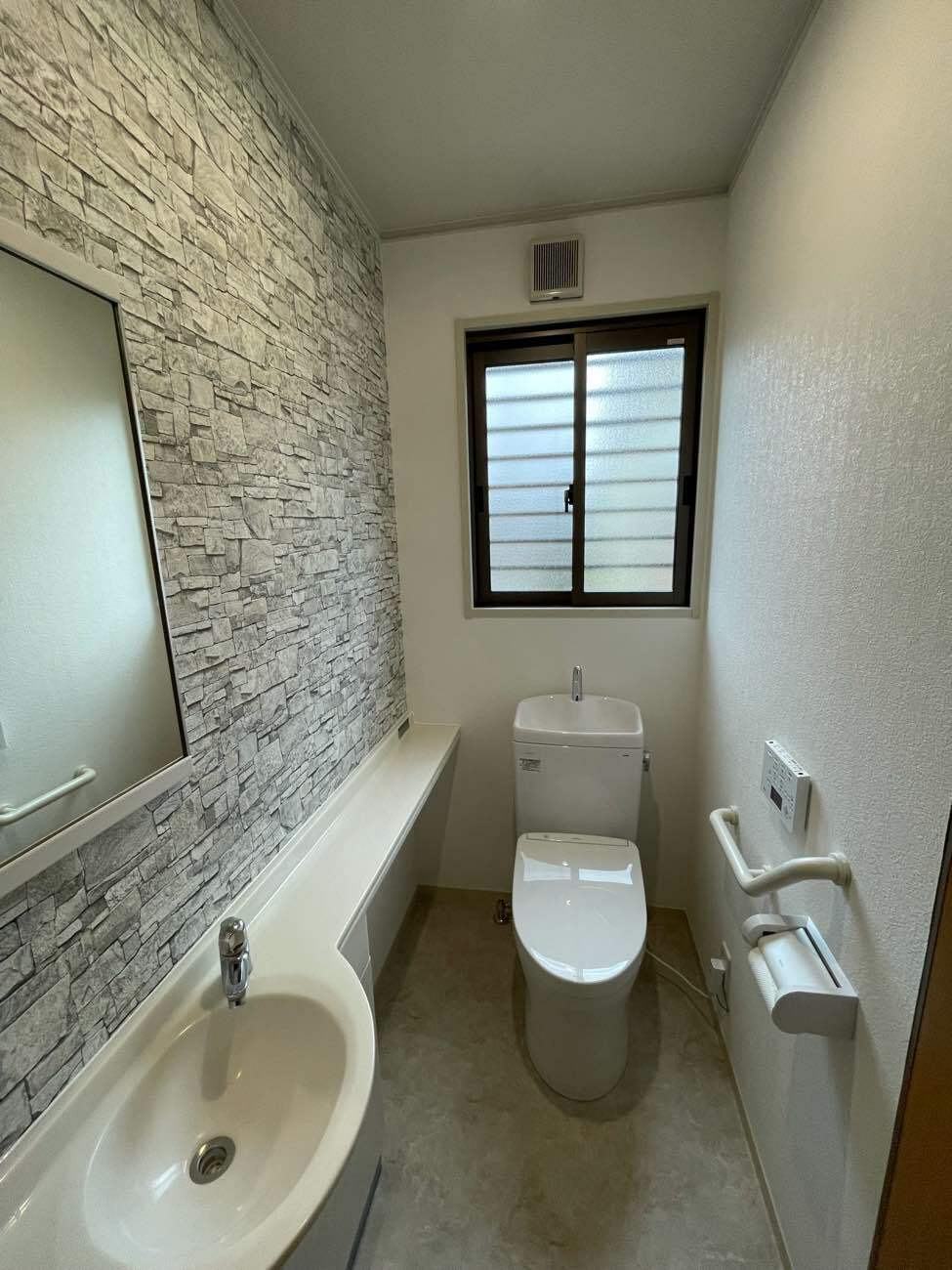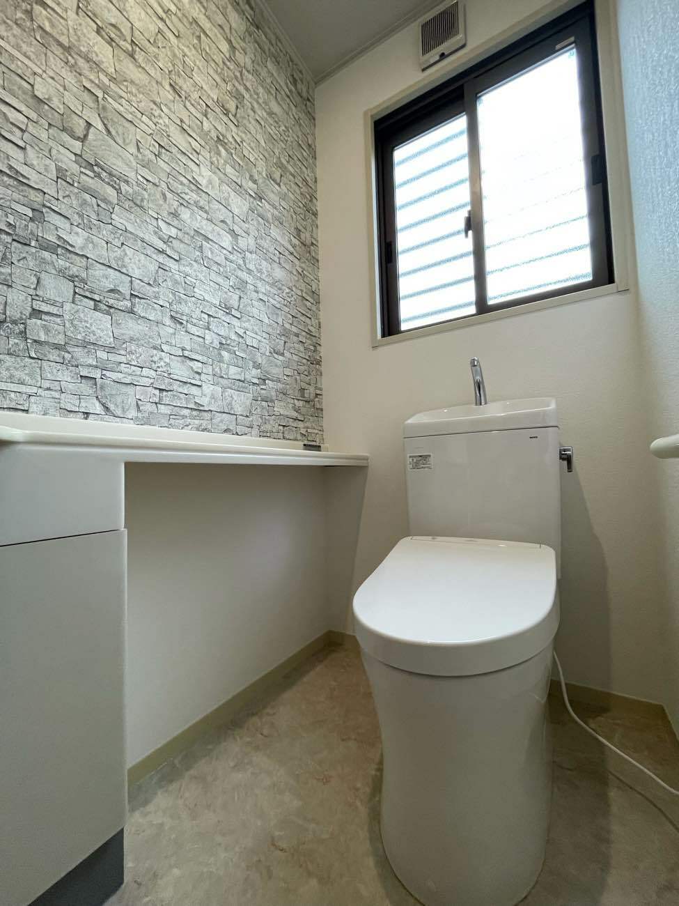 内装も変わり映えをさせるため、石目調の柄をアクセントにしてモダンな空間に!