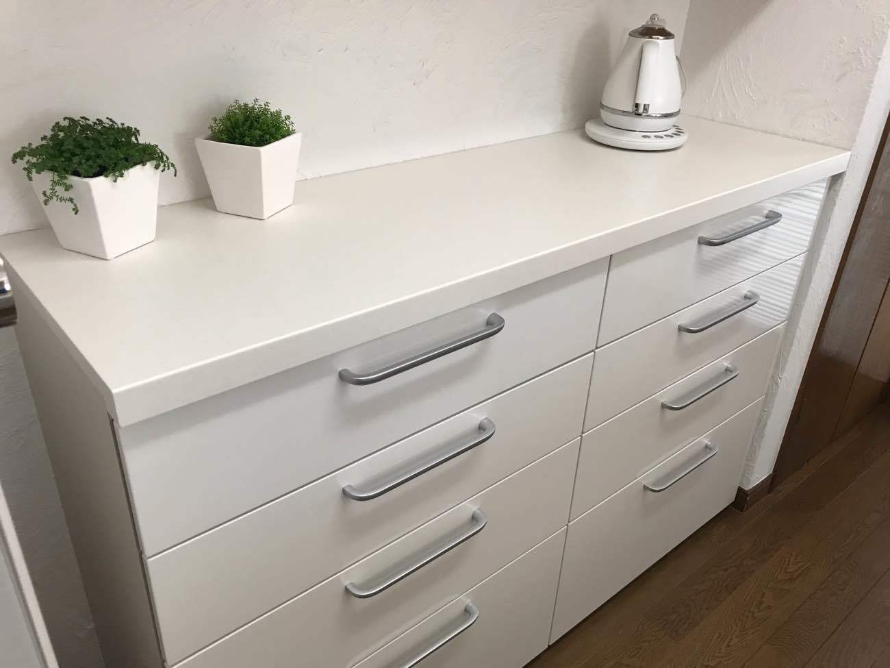 キッチン空間がまるでひとつのインテリアになったように明るくなりました!