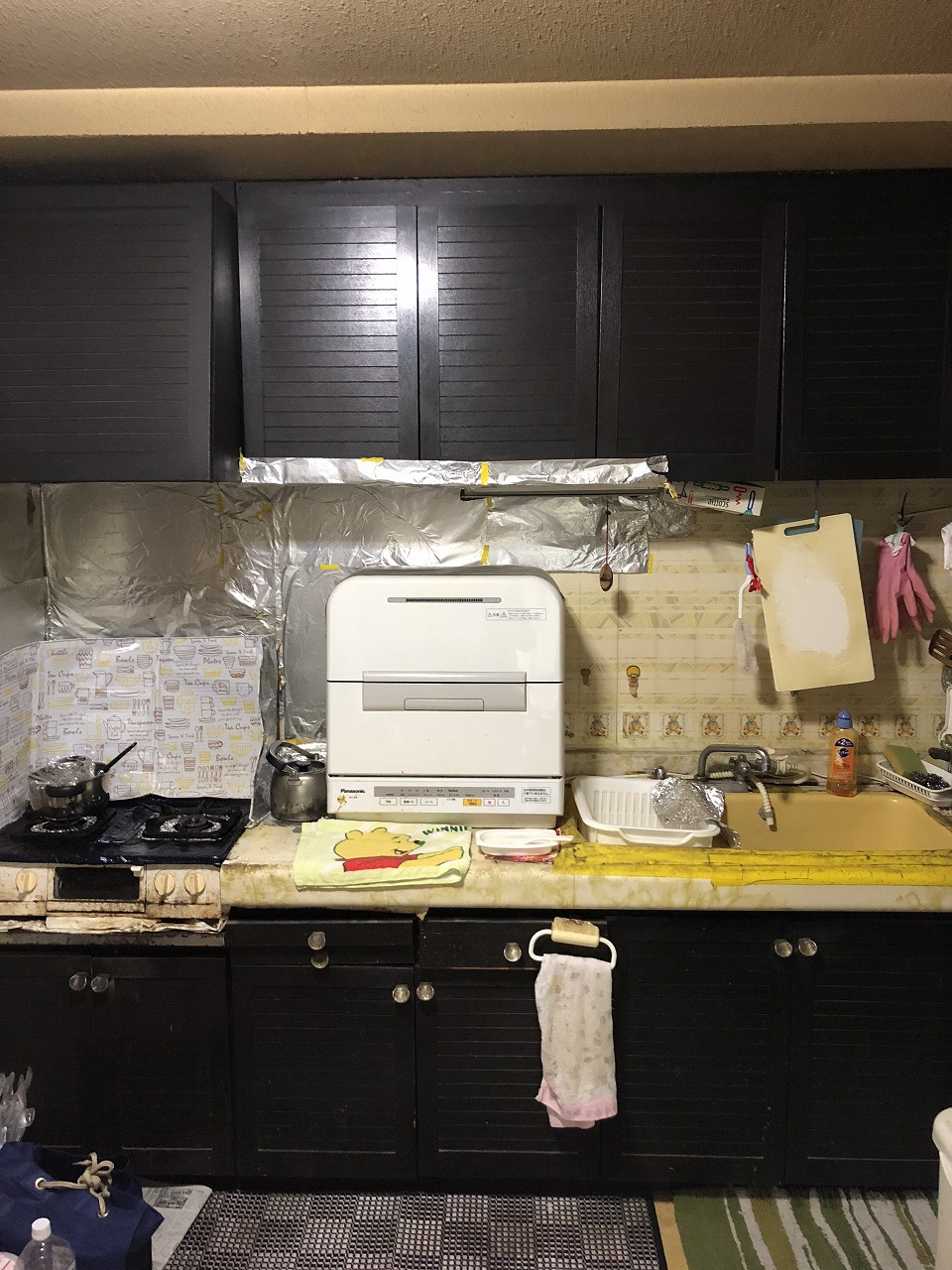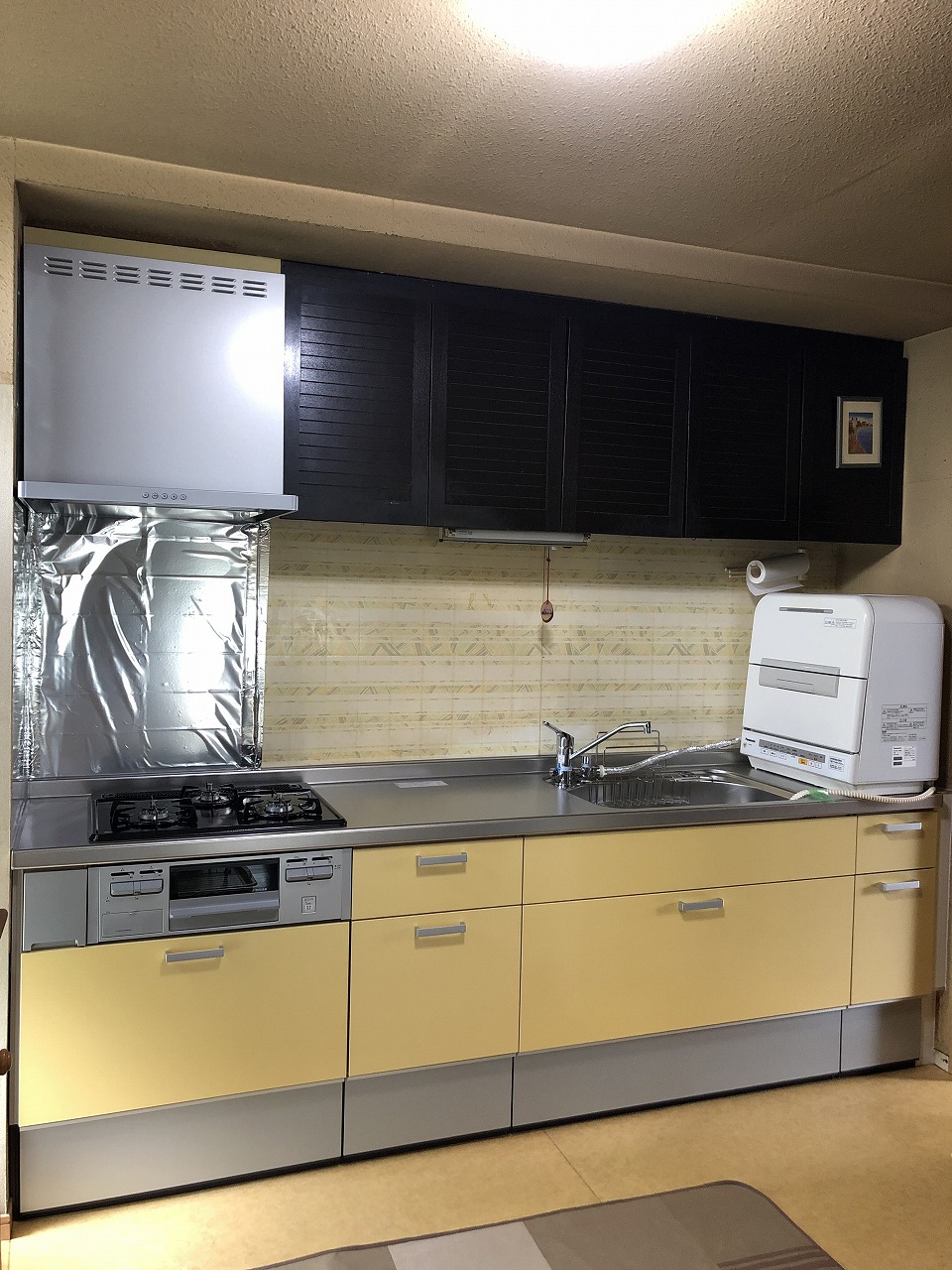 シンク幅が大きいことに加えて天板上に食洗器を置いているので、まな板で食材を切ったりするスペースが狭く使いにくい。