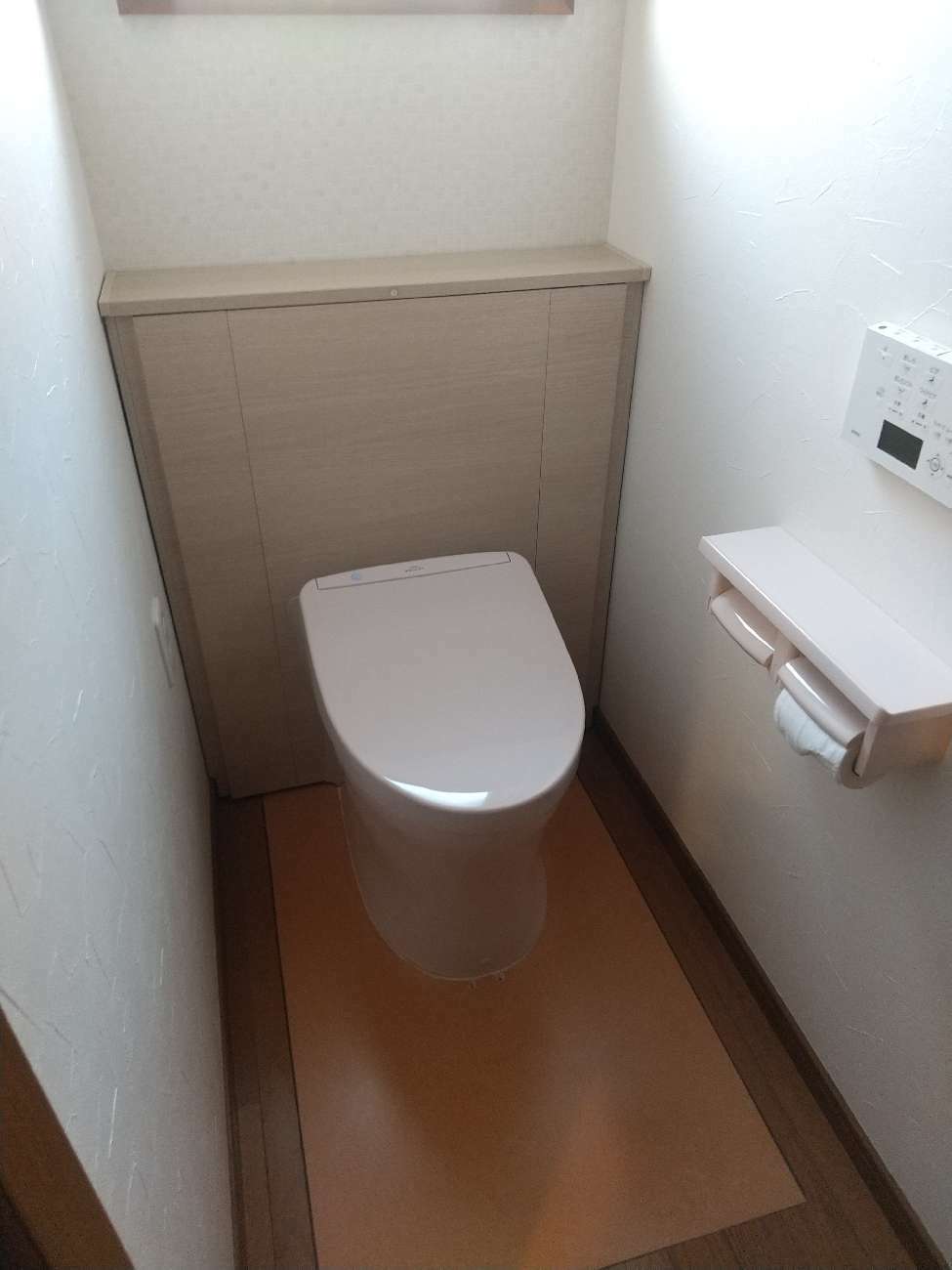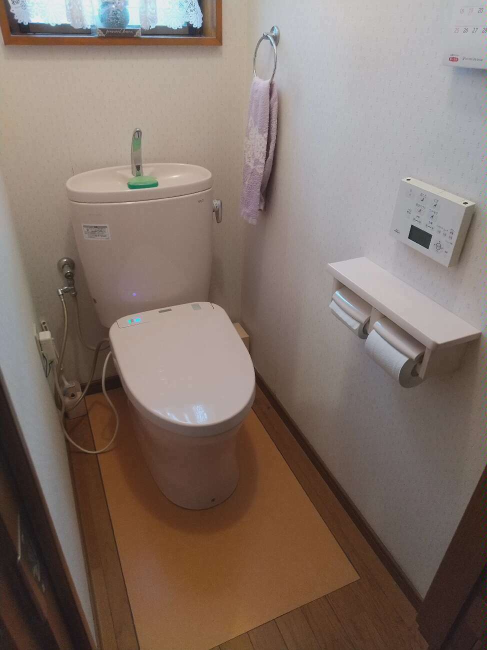 浴室工事と同時にご用命いただきました、内装仕上げの都合で2日に渡る工事となり期間中はご不便をお掛けいたしました 完成したトイレ 本当にスッキリに変身できました