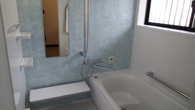 まだ新しい電気温水器は取り換えずにガスの追焚き専用機を設置していつでも暖かい湯船に入れるようになりました。また断熱性の高い浴槽はもちろん、熱の逃げ道になりやすい窓も断熱性の高いペアガラスの窓へ取替。暖房換気扇の設置によりいつでも快適な浴室になりました。