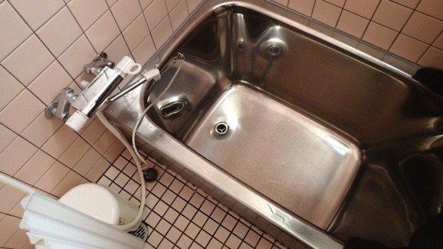 冷たいタイルの浴室。また追い焚き機能のない電気温水器のため追焚きが出来ず不便でした。