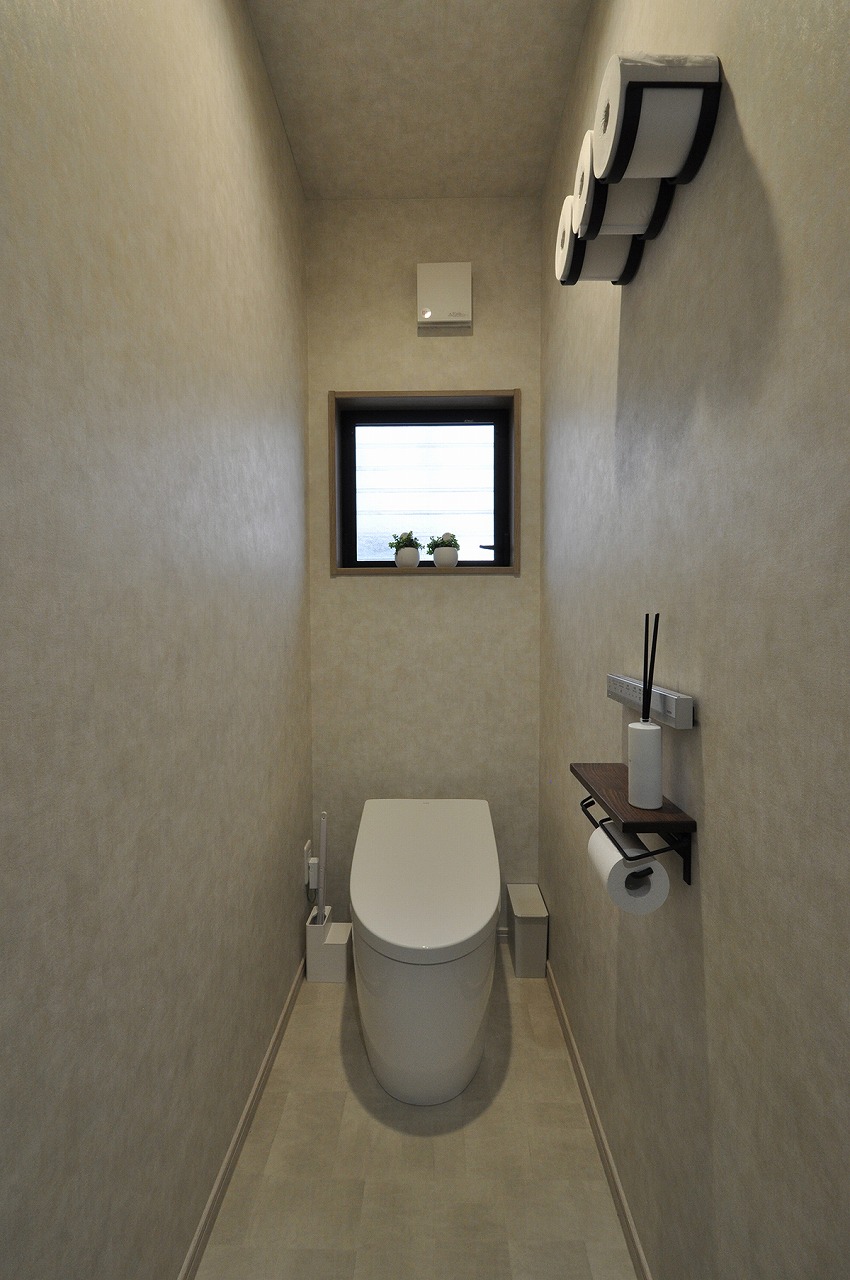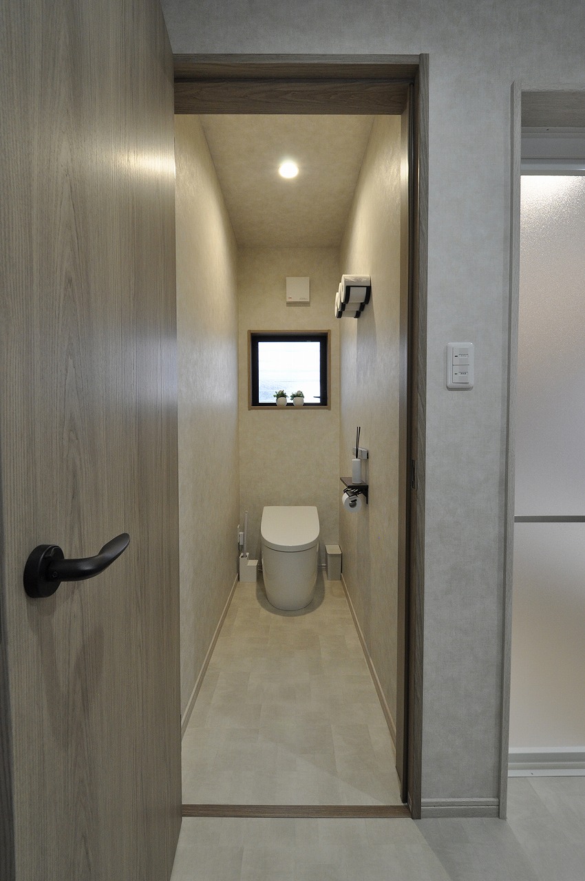 最新モデルのタンクレストイレの採用に合わせ内装ドアなども一新。落ち着いたトーンのカラーでコーディネートしています。