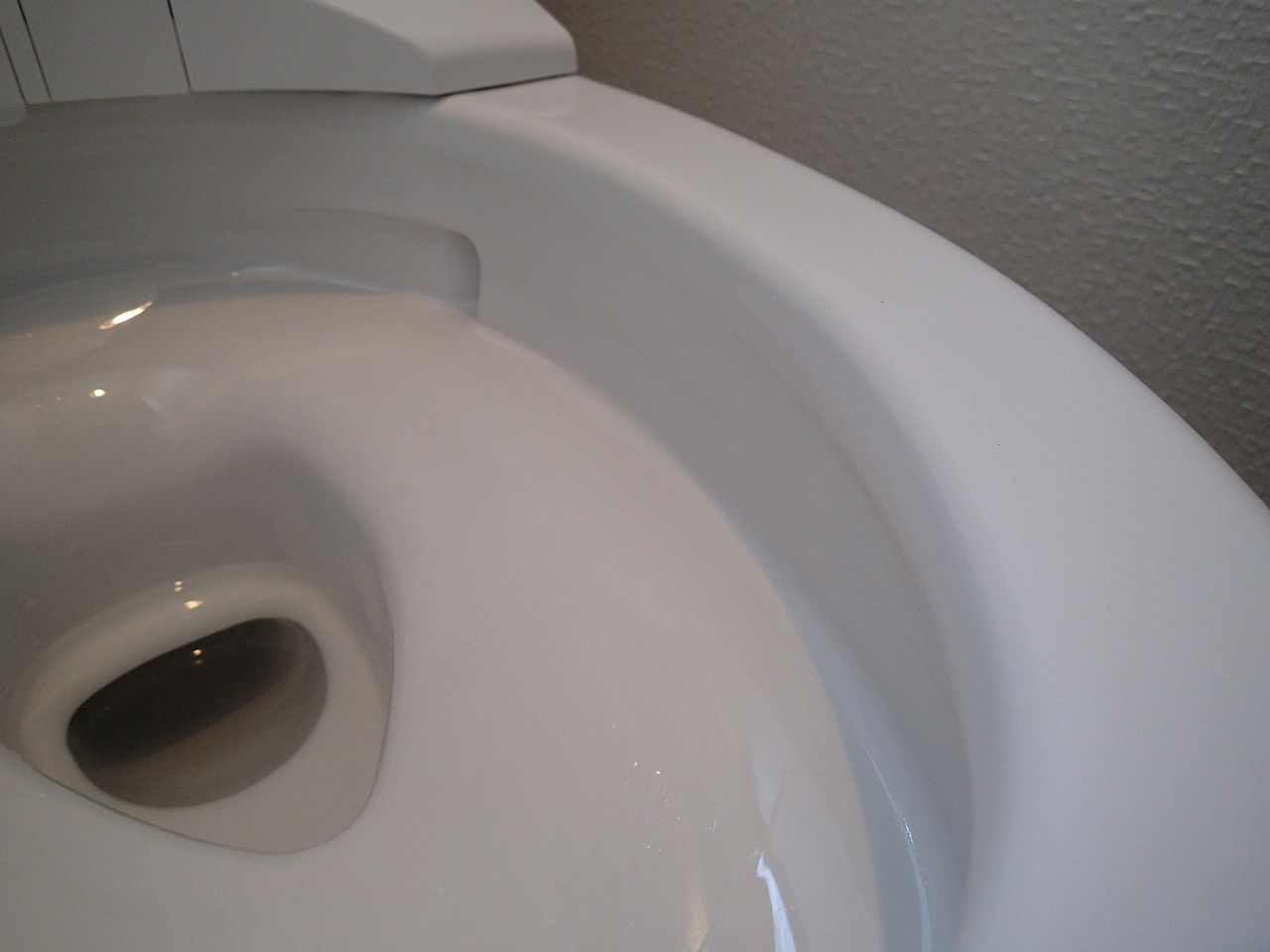 新築当初からの便器は使う水の量も多く、掃除もし辛い形状でした。
