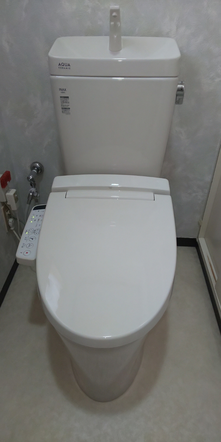 節水トイレにすることで水量も少なく、そして流れる水の音も静かになりました。