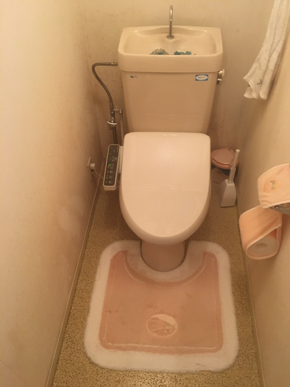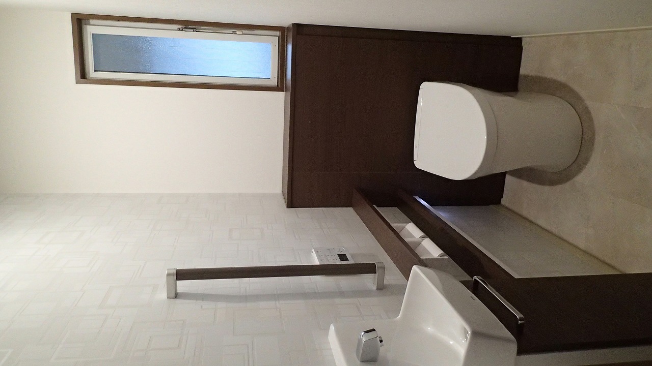 | 仕様 | システムトイレ TOTO レストパルL型まるごと収納タイプ 内装工事 サンゲツ 壁天井クロス、床クッションフロアー貼替 |