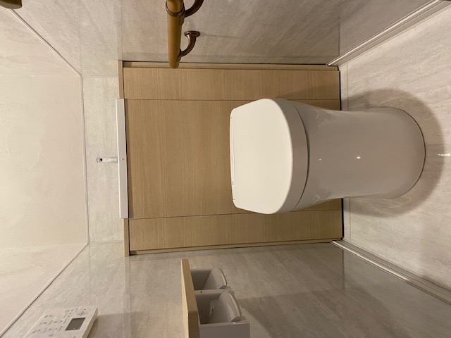 タカラスタンダードの「ホーロークリーントイレパネル」を壁と床に張りました。