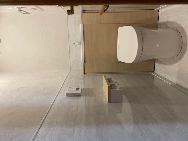 トイレのタンクが背面のキャビネットの中に隠れている「レストパル」です。