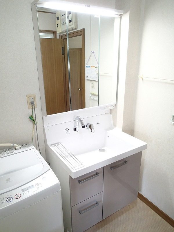 30年前の洗面化粧台は老朽化し底板が朽ちてしまっていました。またボウルの高さが低く、使い勝手があまりよくありませんでした。