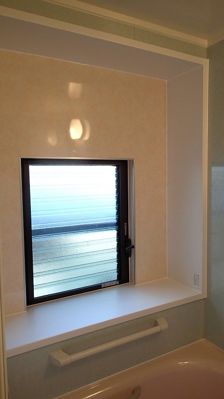 造作で作られていた窓台の空間を塞ぎたくないとのご要望からシステムバスと浴室用壁パネルを組み合わせて窓まわりの空間を広げることにより解放的な空間に仕上げました。