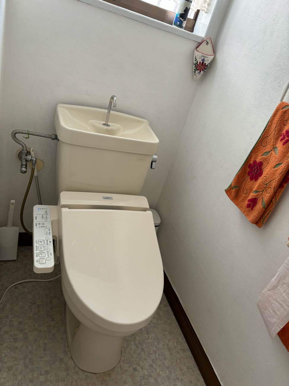 便座のリモコンを壁に持っていくことにより、トイレの両サイドがスッキリした印象になりました。