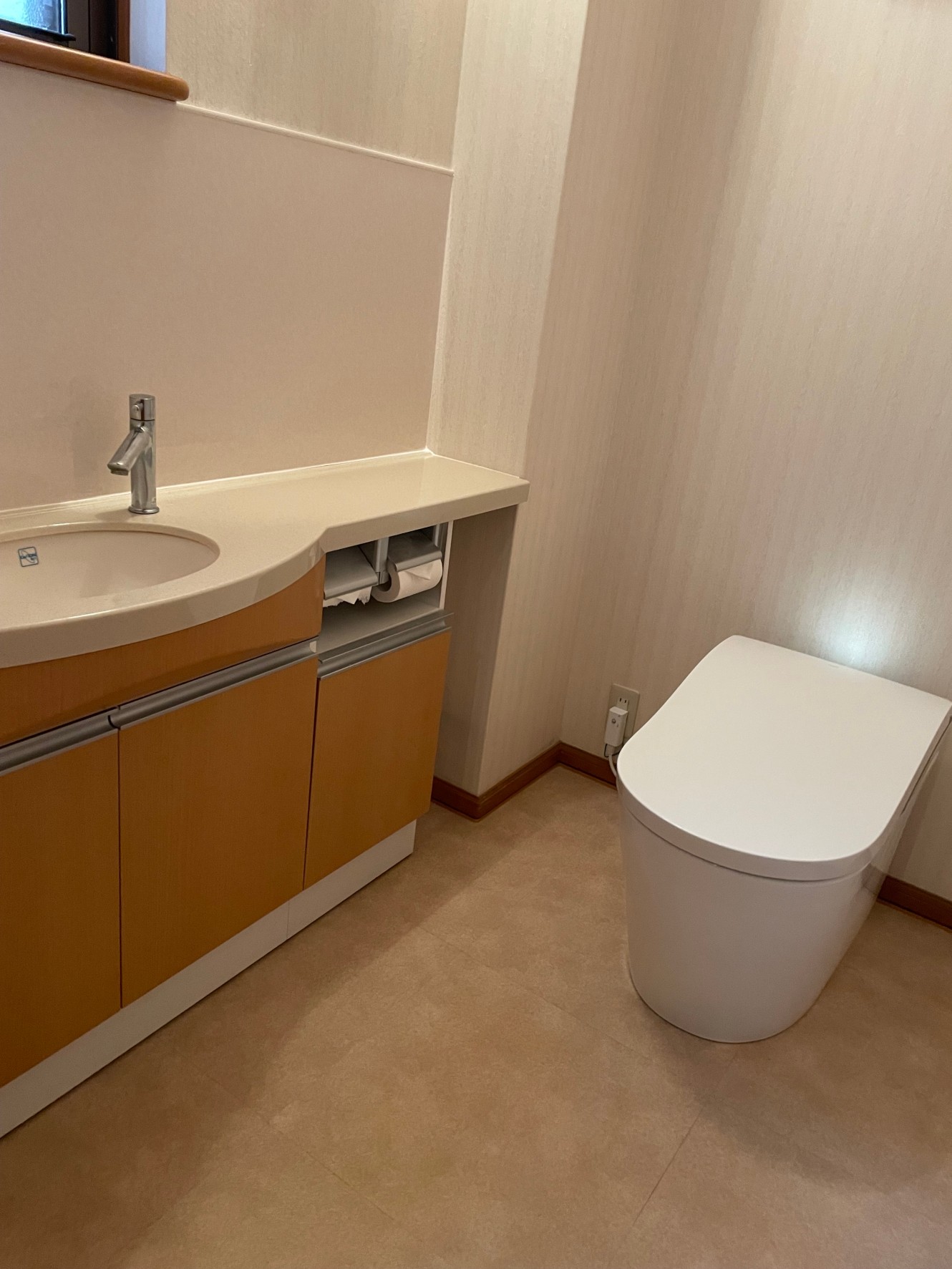 1Fにネオレスト、2F組み合わせ便器でしたので掃除面も含めて一体型のすっきりとしたタイプがいいなとのことでした。