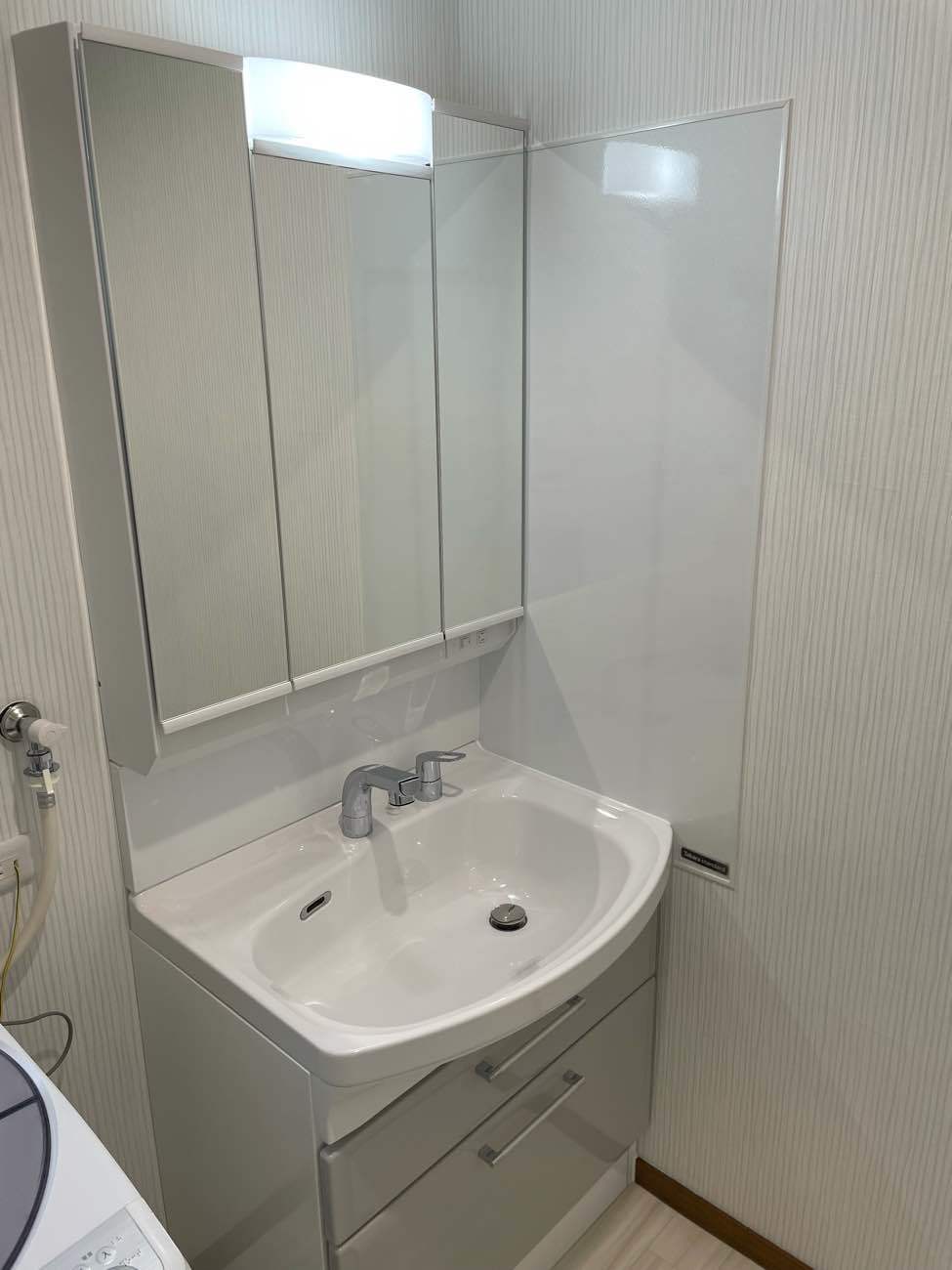水撥ねなどで洗面化粧台横の壁が汚れてしまうことも悩みの種でした。