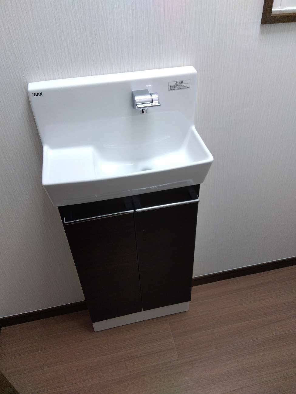 既存のカウンターと手洗器は撤去し、コンパクトなサイズの収納兼手洗器「コフレルワイド」を設置いたしました。