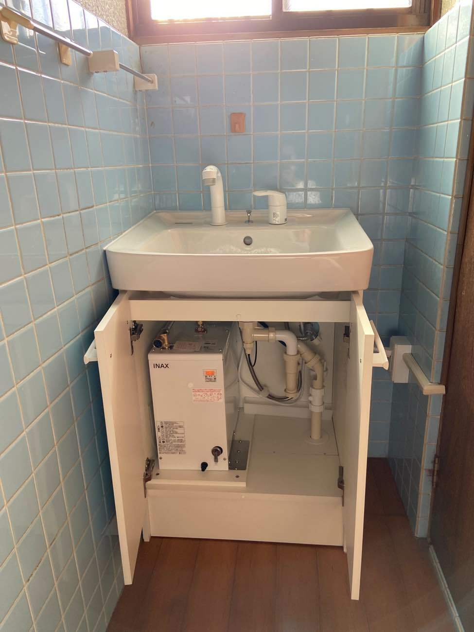 今回は小型の電気温水器を設置する事で一時的なお湯の使用を可能にしました。