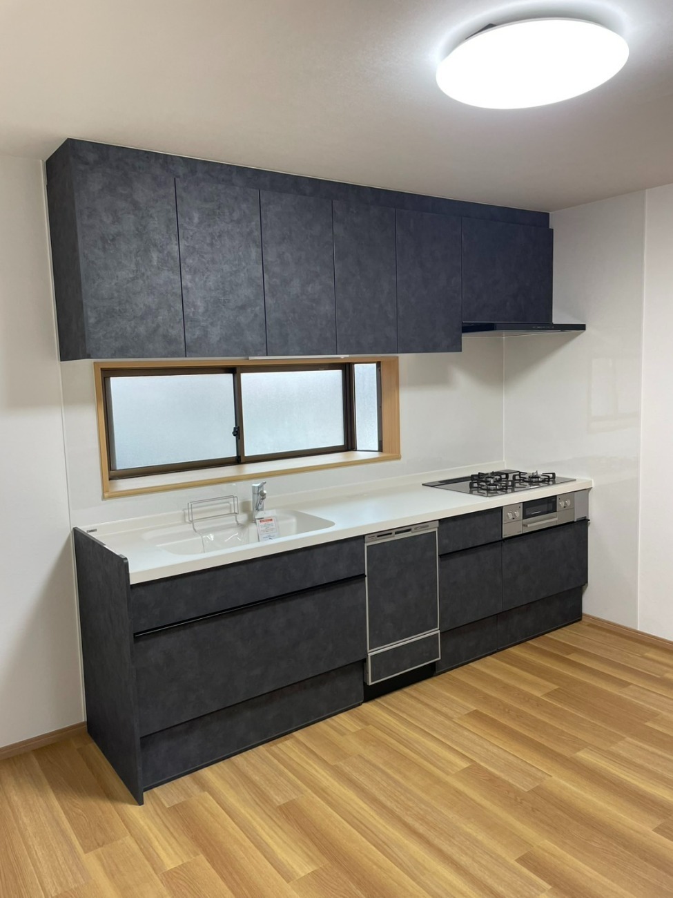 食洗機は再利用し、面材だけパネルを貼り見た目を揃えました