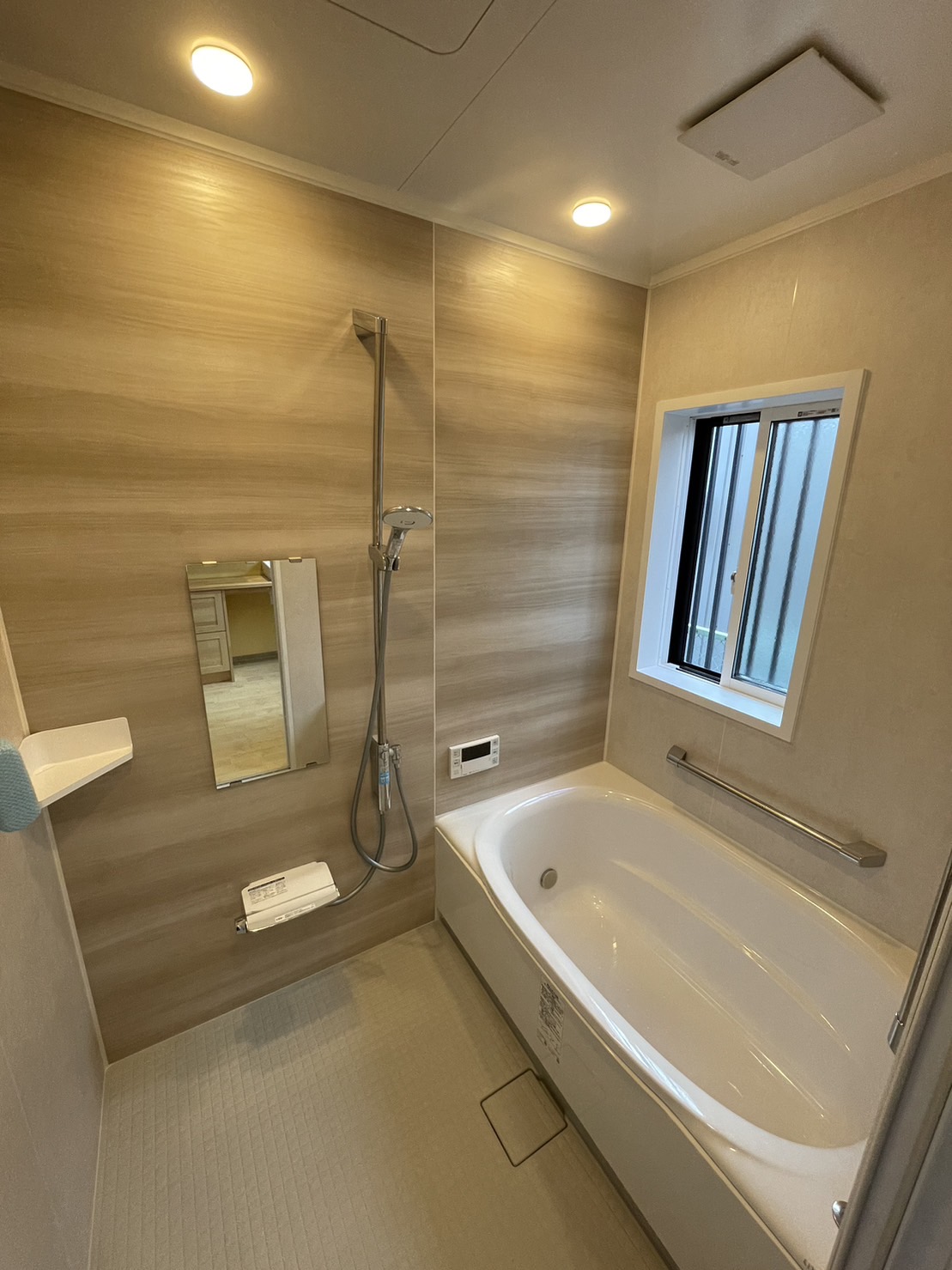 浴室のお色味もナチュラルで且つ4面共にお色味を入れ、華やかな雰囲気になりました。