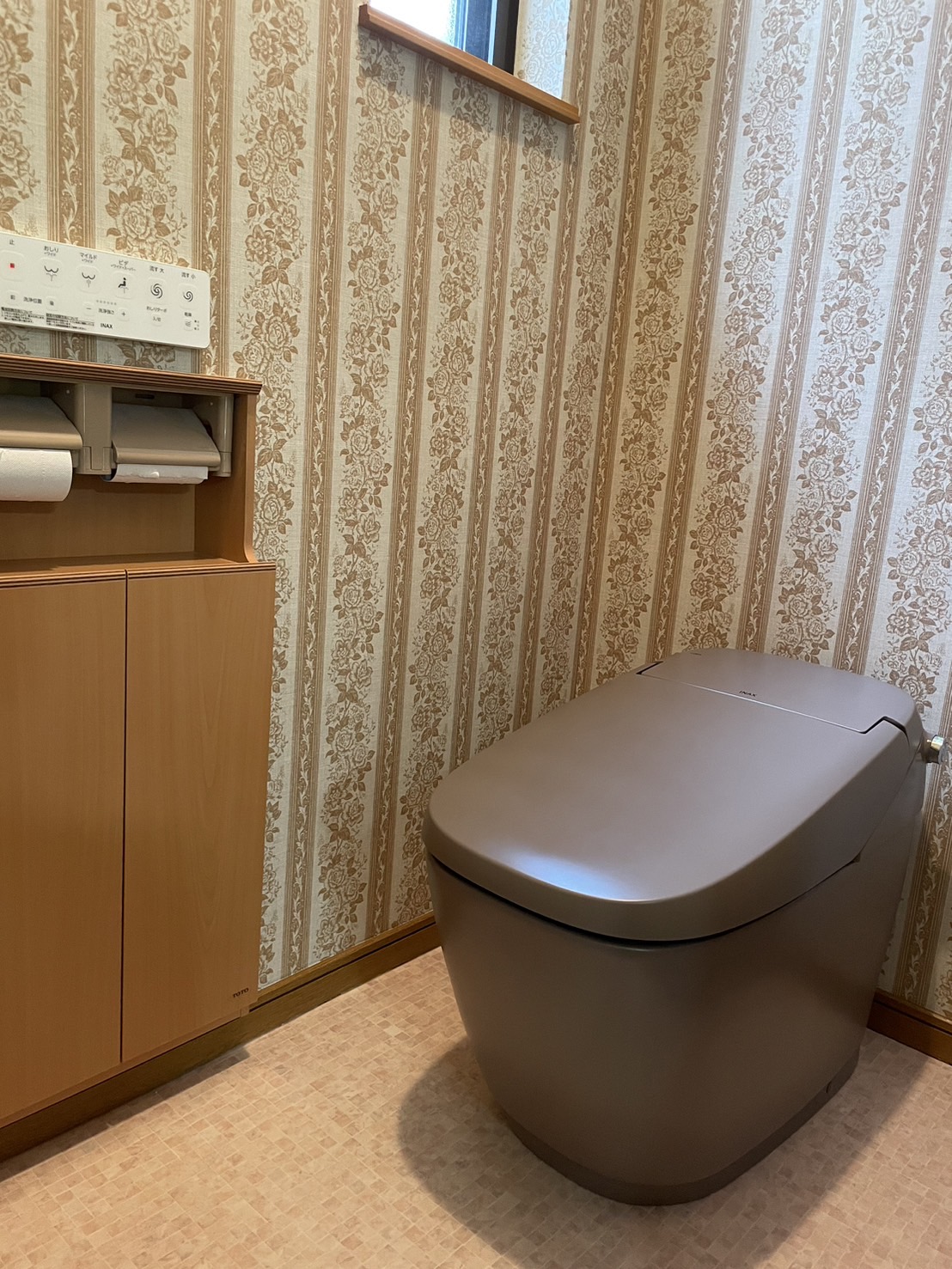 トイレ本体の落ち着いたお色味に合わせて、内装も一新致しました。