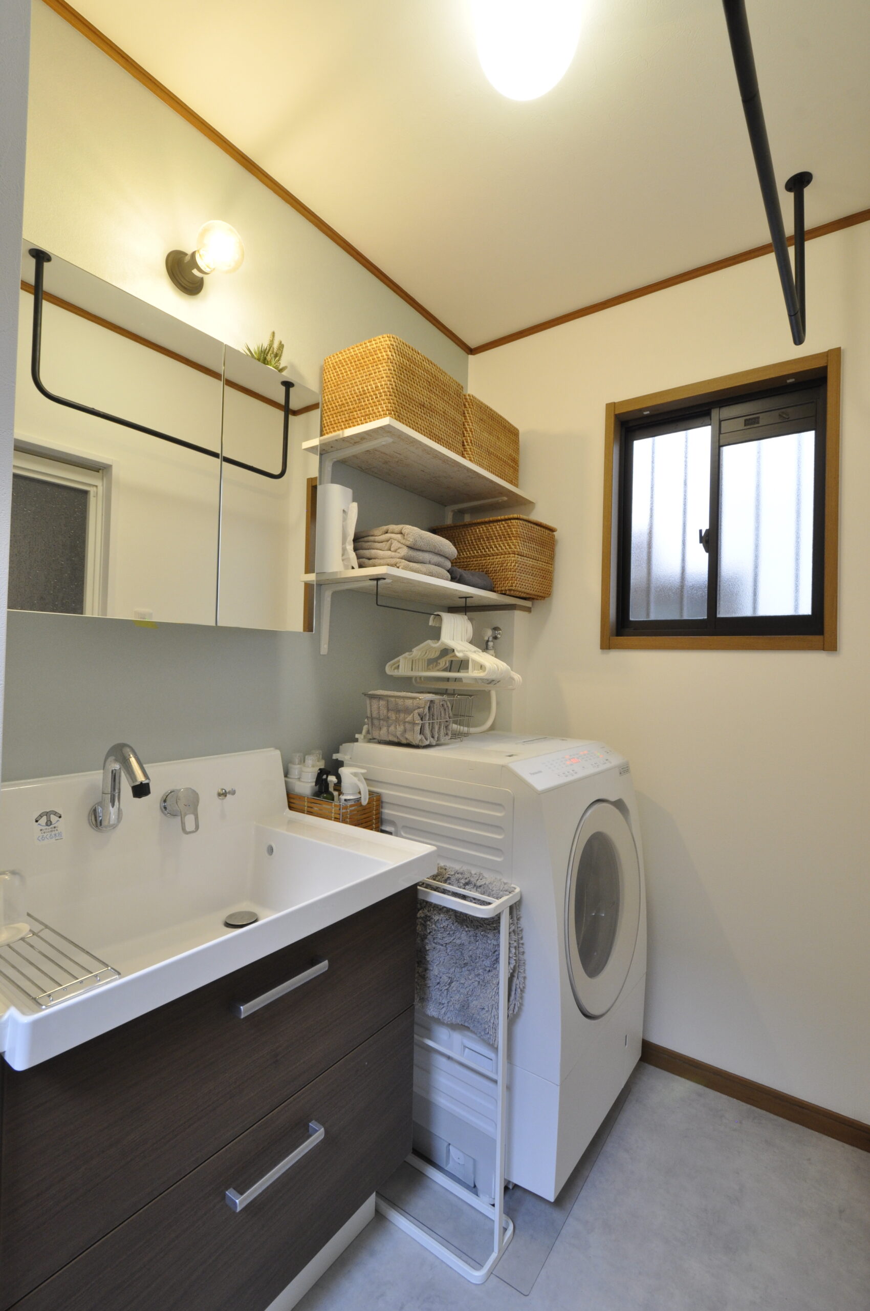 洗面はオシャレに!!それでもって使い勝手の良い仕様にしました。